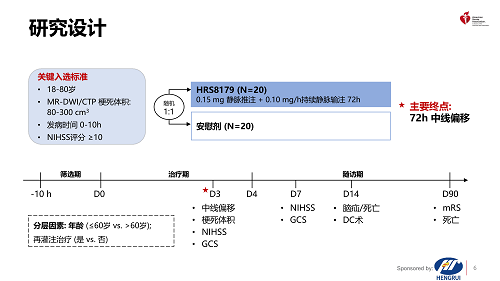 [1] Liping Liu, et al. HRS8179 in Patients with Cerebral Edema after Large Hemispheric Infarction: A Multicenter, Randomized, Double-blinded, Placebo-controlled, Phase 2 Study. 2025 International Stroke Conference. Abstract 6.